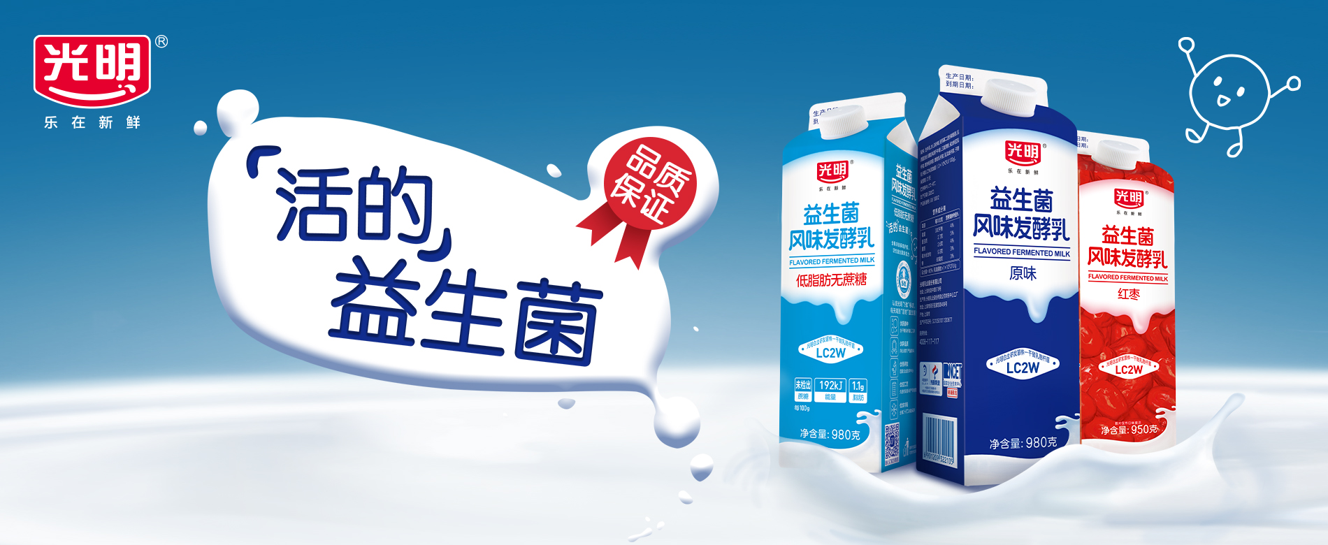 光明益生菌風(fēng)味發(fā)酵乳系列,滿(mǎn)足大眾人群日常飲用和家庭營(yíng)養(yǎng)需要,特別添加光明自主研發(fā)菌株——干酪乳酪桿菌LC2W,呵護(hù)健康。喝光明,每天喝到活的益生菌!