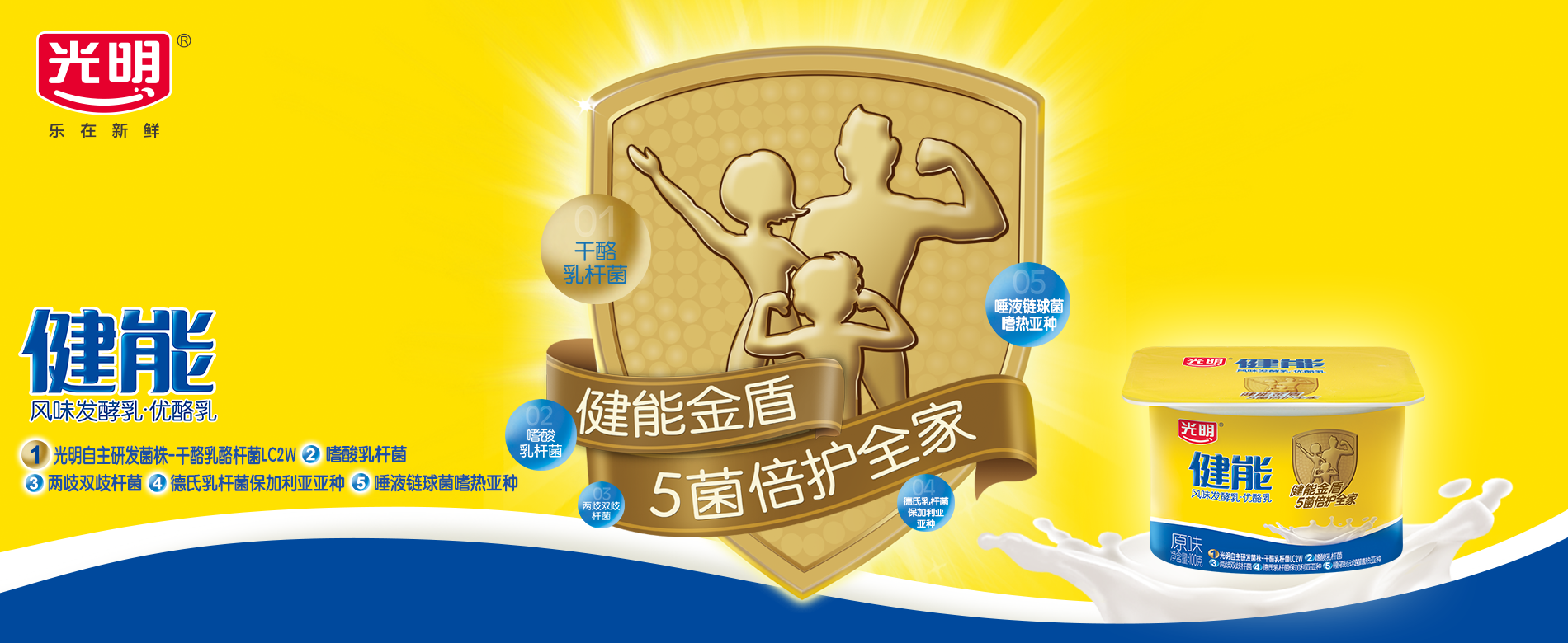 光明健能品牌,包含成人健能和兒童健能2款系列產(chǎn)品,五種有益菌群,提升健康保護(hù)力,給全家金盾般的倍護(hù)。